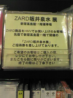 200905/29 「君を、忘れない」ZARD展三日目 ZARDと羊 1 羊@仕事帰り。高島屋着。パンフ…なくなったの?インフォメーションにもなかった。今日は11F停まったwメッセージボードの前。ふと、日付を入れていなかったことに気付いた。で、追加して。誘導の看板が。昨日まであった?見付けなかった…今日は会員証提示して。中にはパンフあったので貰って。持ってるだろってツッコミはナシでwさらっと見て。上映会のチケもらって。一旦外に。グッズコーナーも。特番告知があった。再度入場。中をぶらりと。してたら、ツワモノ美愛嬢に遭遇!!彼女も三日目だってwわーい ZARDバカだーお・た・が・いマイミクYOSHIさんにもお逢いしました。武道館以来ですw再会を確認?して。別れた。会場を出て。帰ろうとエレベーター…待ち切れず、エスカレーターで降りて、ふとHMVに行こうと。こんなもんかな、とふと横を…ぎゃぁぁぁぁぁああ!!!!!しかもーHMV新宿だけの特典って…(TДT)…通常版を手に。どうでもいいけどPREMIUM BOXのミニwミニチュア大好きなんで意味なく…wいちお、サ行も見に行くと。慌ててレジへ。流石に招待券はなかった…失敗した…○| ̄|_店員さんの話では、一般の入場券とデザインは一緒みたい。多分色違いだな…欲しかった…で。購入した。週末だけど待ちきれないのでw休憩コーナーで開封。待受もDLした。待受はフラッシュなので上げられないけど。DLページにあった画像をお裾分け。小さいけど…。で、今は。帰途に着いています。ブログ書きつつwww(20:53更新) PR